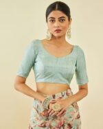 • The last image gives a detailed look of the blouse piece that comes with this saree (The model is wearing a blouse from our in-house wardrobe)