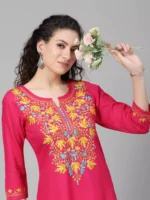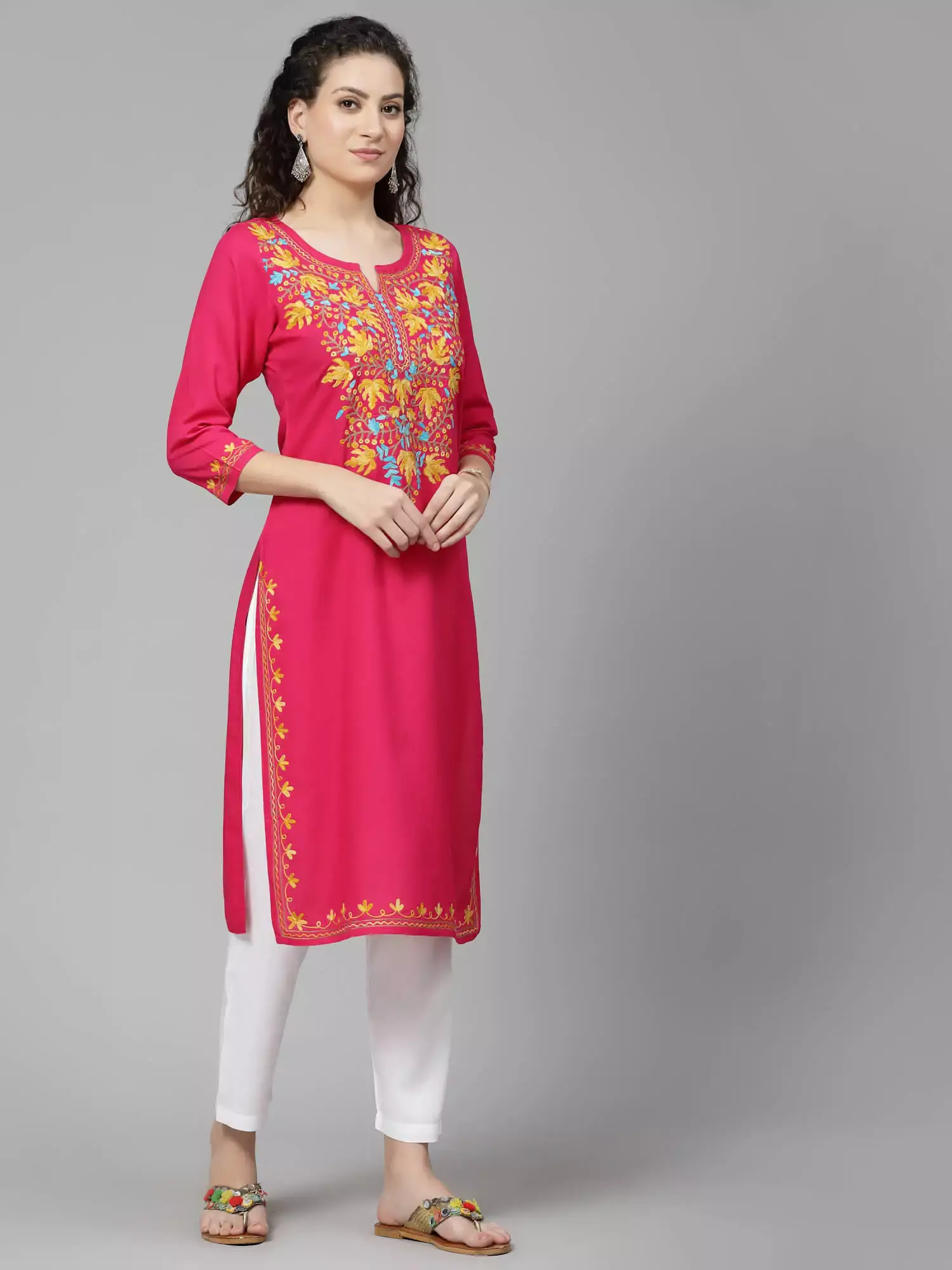 Home Kurtis Pink Kashmiri Chinarkari Kurti
