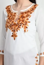 Look ethereal in this Aari work Kurti, freshly crafted in the lightness and comfy feel of cotton.