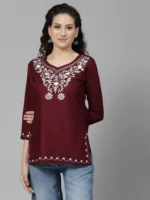 Wine Colored Resham Work Short Kurti