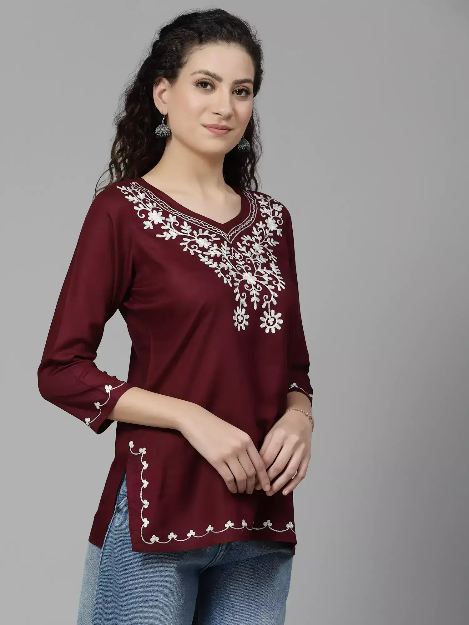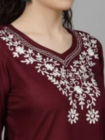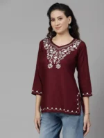 Home Short Kurtis Wine Colored Resham Work Short Kurti